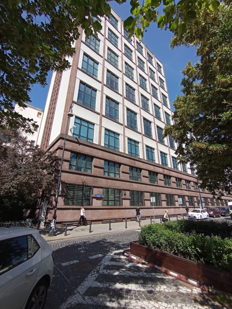 wraz z pobraniem i analizą próbek, wykonaniem odkrywek oraz badań materiałowych w budynku historycznym objętym ochroną konserwatorską przy ul. Nowogrodzkiej 45 w Warszawie. Budynek o łącznej powierzchni ponad 26 tys. m2, wykonano odkrywki w ponad 200 punktach całego budynku, łącznie z przeprowadzeniem badań próbek betonu, stali oraz nitów.